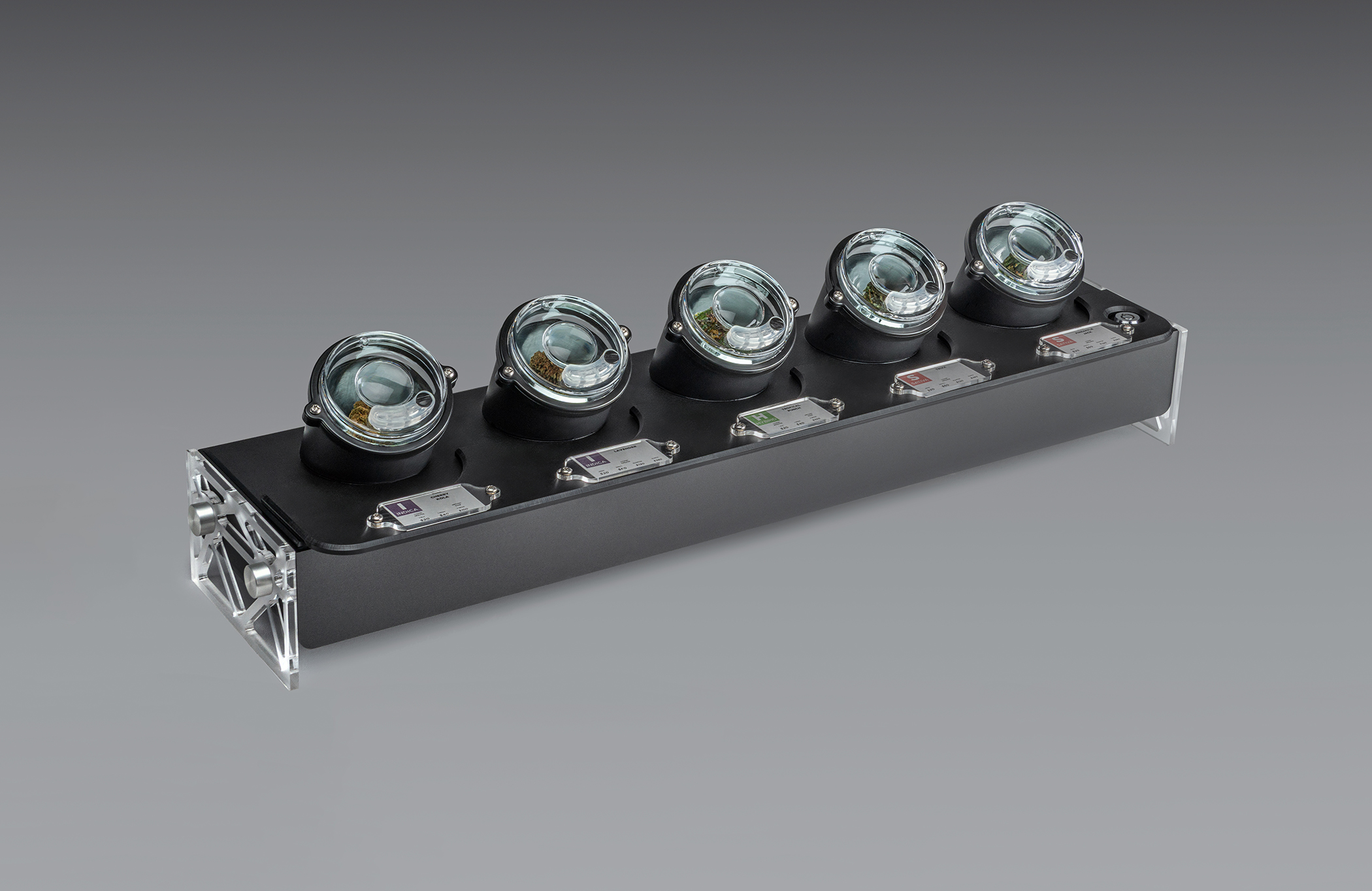 Ignite your retail potential! Step into a world where quality and artistry speak volumes. Introducing the Sprout Bar, Bud Bar’s newest addition to the Bud Bar Display family. The Sprout Bar gives your customers a unique new way to smell the aroma of the displayed flower’s terpenes while viewing their trichomes from the perfect viewing angle. In addition, the display’s tethering system ensures your samples can be secured in any Dispensary setting. Imagine highlighting your products with this elegantly designed display creating an atmosphere that draws customers in, encourages exploration, and makes them feel connected to your brand and products.